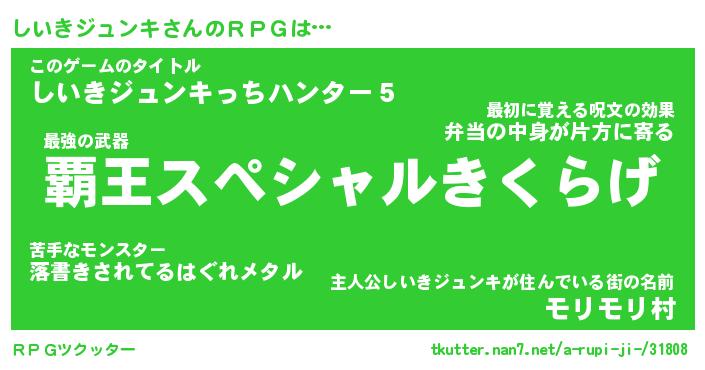 | 男性向けラノベタイトル風あだ名 | 『シイキジュンキアートオンライン』 |