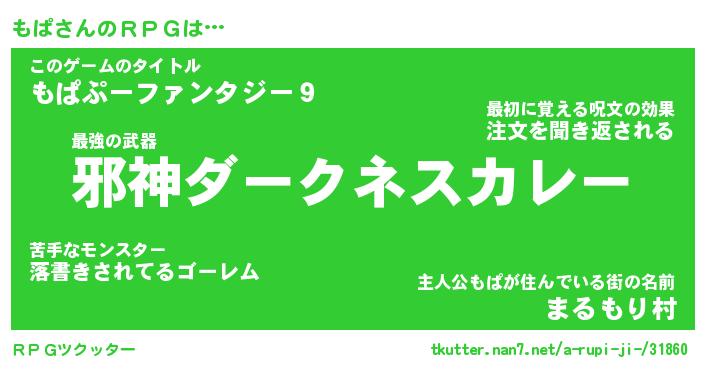 | ファンタジー風あだ名 | 『モパフェル』『エターナルモパー』 |