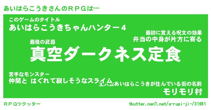 | 伝説のあだ名 | 『封印されし傭兵あいはらこうき』 |