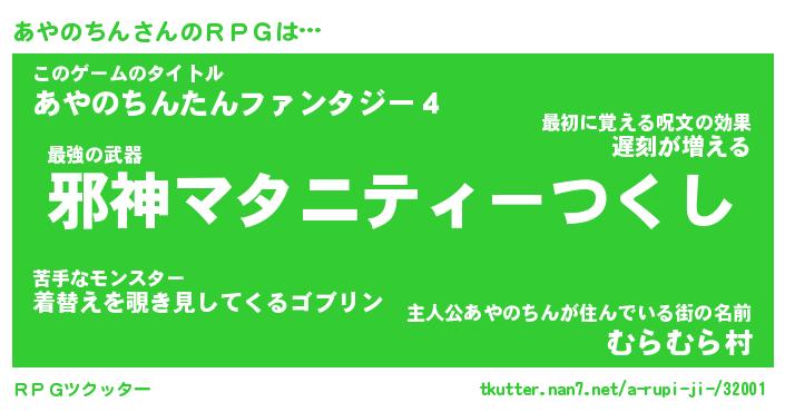 | ファンタジー風あだ名 | 『アヤフェル』『エターナルアヤノチンー』 |