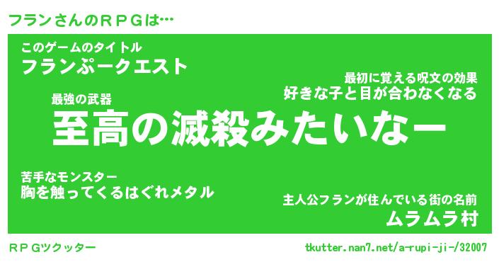 | ファンタジー風あだ名 | 『フラフェル』『エターナルフランー』 |