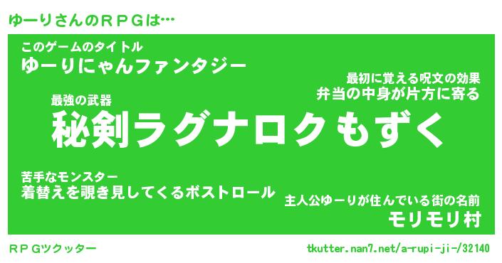| 男性向けラノベタイトル風あだ名 | 『ゆーりの憂鬱』 |