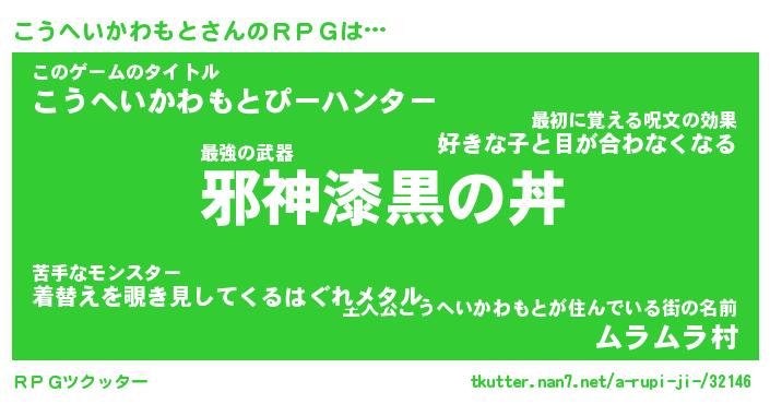 | 男性向けラノベタイトル風あだ名 | 『コウヘイカワモトアートオンライン』 |