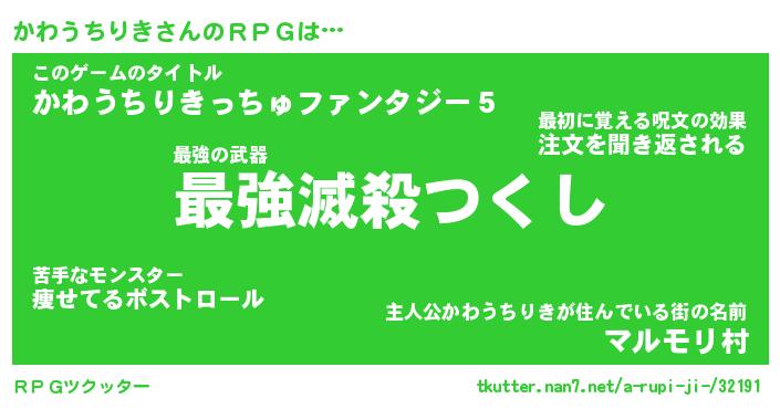 | ヒーロー風カッコイイあだ名 | 『スーパーカワウチリキ』『幻影騎士カワ』 |