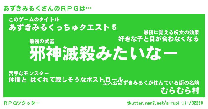 | 男性向けラノベタイトル風あだ名 | 『アズキミルクアートオンライン』 |