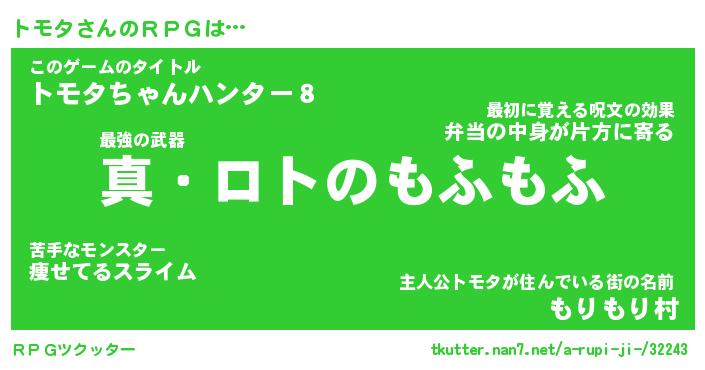 | ファンタジー風あだ名 | 『トモフェル』『エターナルトモター』 |