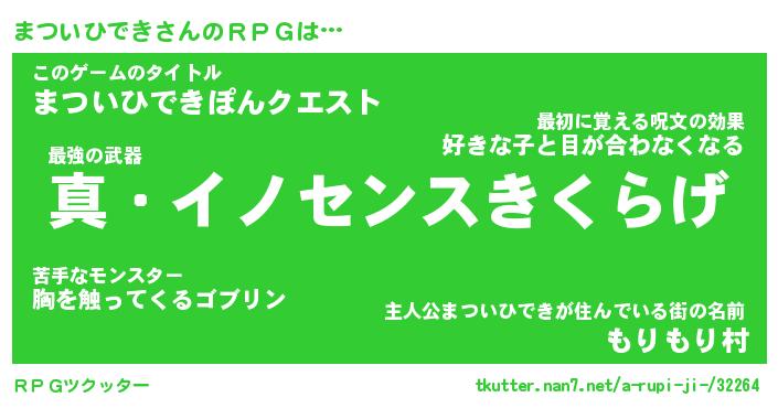 | 男性向けラノベタイトル風あだ名 | 『マツイヒデキアートオンライン』 |