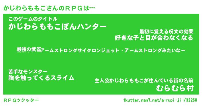 | 男性向けラノベタイトル風あだ名 | 『カジワラモモコアートオンライン』 |