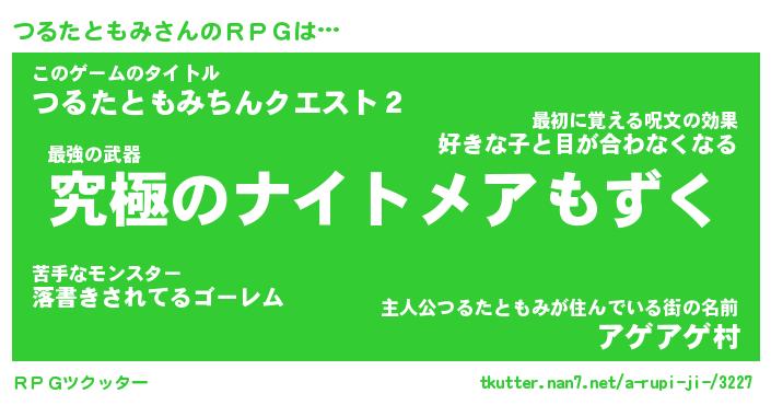 | 胡散臭い通販商品みたいなあだ名 | 『モテモテ間違いなし霊験あらたかなお札…その名も「つるたともみ」』 |