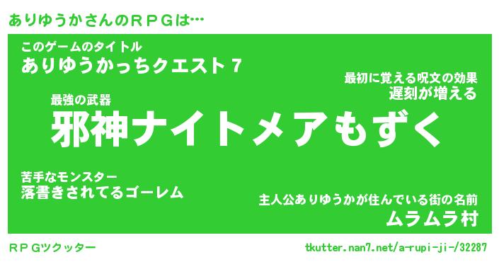 | 男性向けラノベタイトル風あだ名 | 『アリユウカアートオンライン』 |