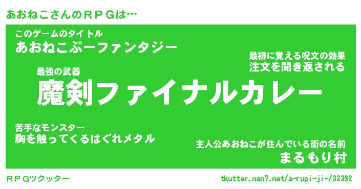 | 伝説のあだ名 | 『伝説の竜騎士あおねこ』 |