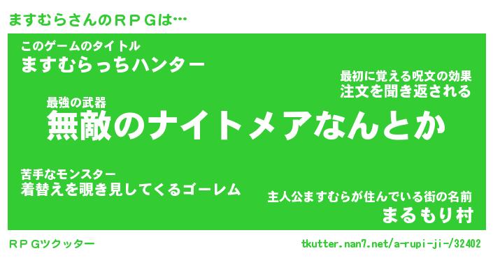 | 男性向けラノベタイトル風あだ名 | 『マスムラアートオンライン』 |