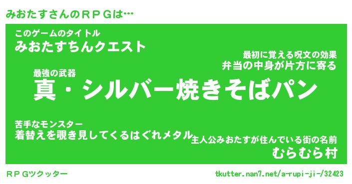 | 伝説のあだ名 | 『封印されし傭兵みおたす』 |