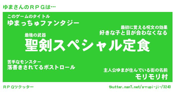 | ファンタジー風あだ名 | 『ユマフェル』『エターナルユマー』 |