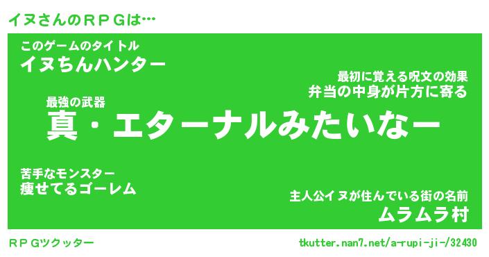 | 男性向けラノベタイトル風あだ名 | 『イヌアートオンライン』 |