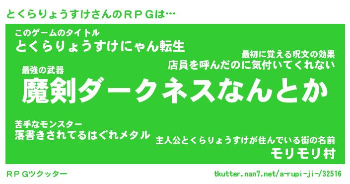 | 男性向けラノベタイトル風あだ名 | 『とくらりょうすけの憂鬱』 |
