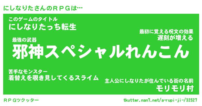 | 男性向けラノベタイトル風あだ名 | 『ニシナリタアートオンライン』 |