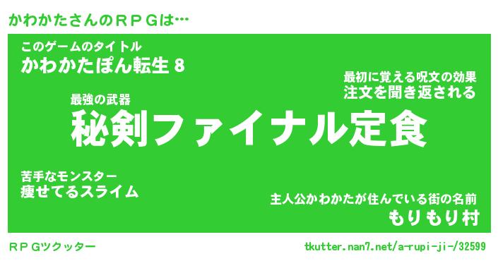 | 胡散臭い通販商品みたいなあだ名 | 『必ず成功する水晶球…その名も「かわかた」』 |