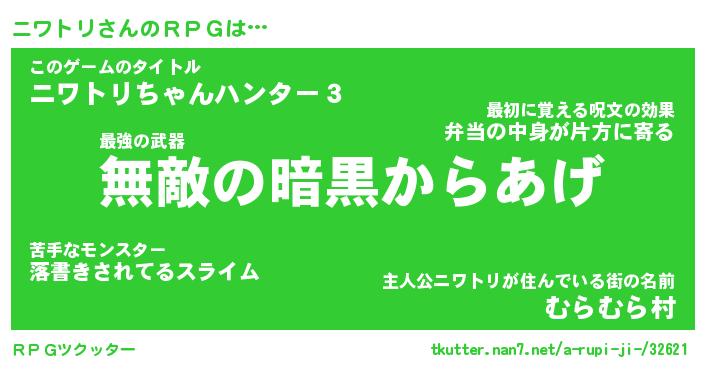 | 男性向けラノベタイトル風あだ名 | 『ニワトリアートオンライン』 |