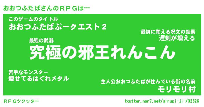 | 男性向けラノベタイトル風あだ名 | 『おおつふたばの憂鬱』 |
