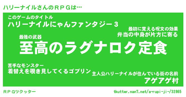| 料理風あだ名 | 『節約★ハリーナイルと油揚げの玉子丼』 |