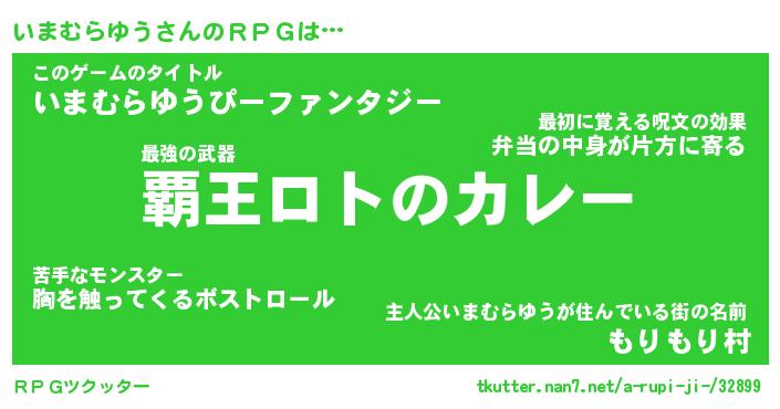 | 男性向けラノベタイトル風あだ名 | 『イマムラユウアートオンライン』 |