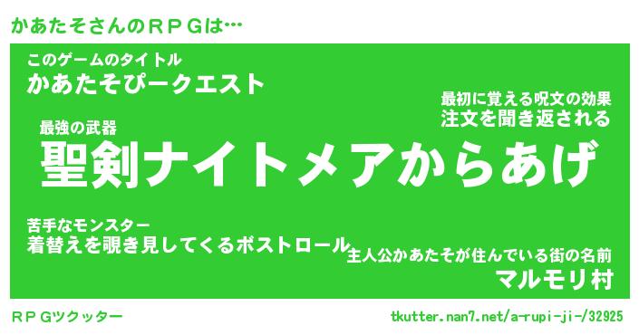 | 胡散臭い通販商品みたいなあだ名 | 『必ず成功する霊験あらたかなお札…その名も「かあたそ」』 |