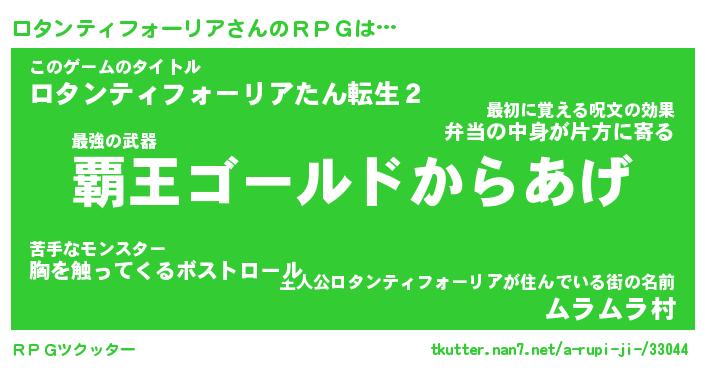 | 男性向けラノベタイトル風あだ名 | 『ロタンティフォーリアアートオンライン』 |