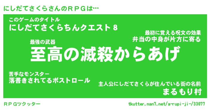 | 男性向けラノベタイトル風あだ名 | 『ニシダテサクラアートオンライン』 |