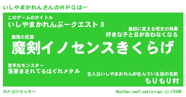 | 胡散臭い通販商品みたいなあだ名 | 『必ず成功する霊験あらたかなお札…その名も「いしやまかれん」』 |