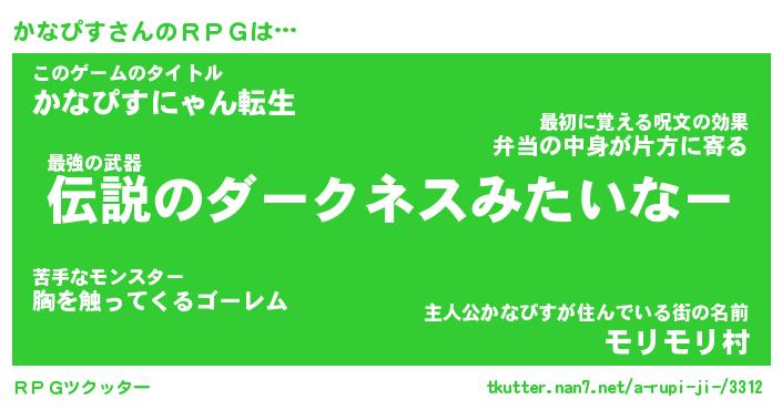 | ファンタジー風あだ名 | 『カナフェル』『エターナルカナピスー』 |