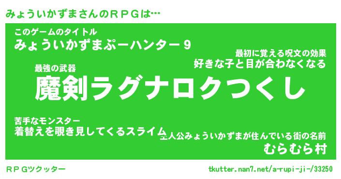 | 男性向けラノベタイトル風あだ名 | 『みょういかずまの憂鬱』 |
