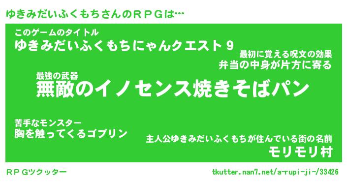 | 男性向けラノベタイトル風あだ名 | 『ユキミダイフクモチアートオンライン』 |