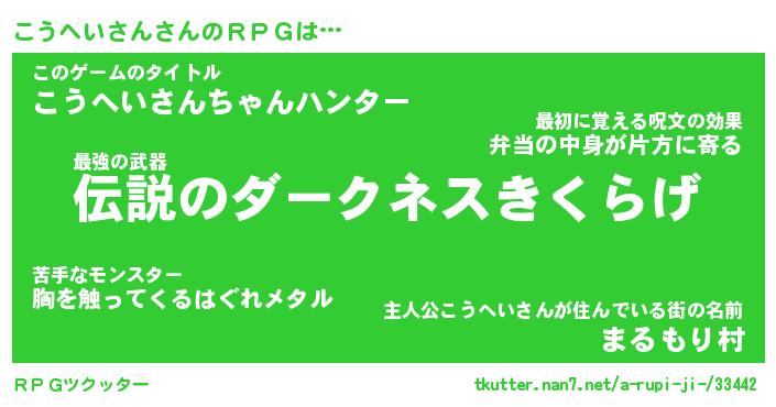| 男性向けラノベタイトル風あだ名 | 『こうへいさんの憂鬱』 |