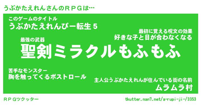 | 伝説のあだ名 | 『伝説の竜騎士うぶかたえれん』 |