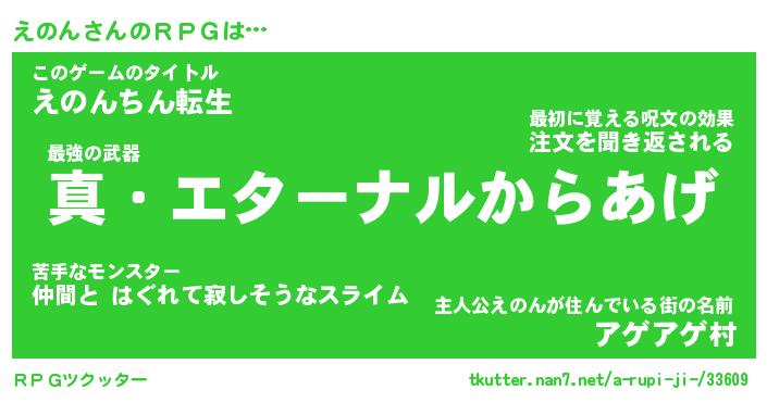 | 男性向けラノベタイトル風あだ名 | 『エノンアートオンライン』 |