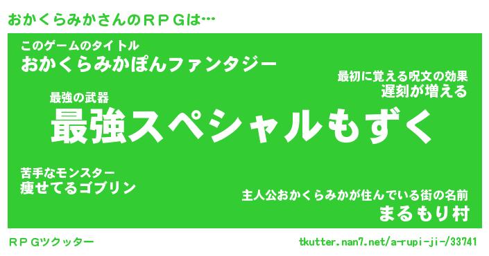 | 女子向けラノベタイトル風あだ名 | 『おかくらみか姫と円卓の騎士』 |