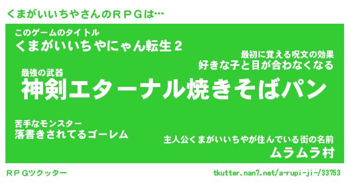 | 女子向けラノベタイトル風あだ名 | 『くまがいいちや姫と円卓の騎士』 |