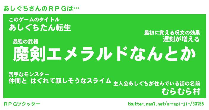 | 男性向けラノベタイトル風あだ名 | 『あしぐちの憂鬱』 |
