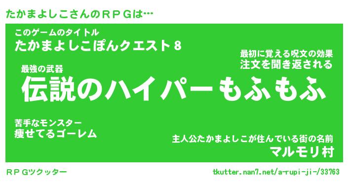 | 伝説のあだ名 | 『不死鳥の竜騎士たかまよしこ』 |