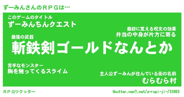 | 胡散臭い通販商品みたいなあだ名 | 『必ず成功する霊験あらたかなお札…その名も「ずーみん」』 |