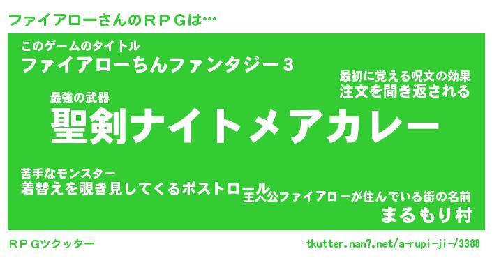 | 男性向けラノベタイトル風あだ名 | 『ファイアローの憂鬱』 |