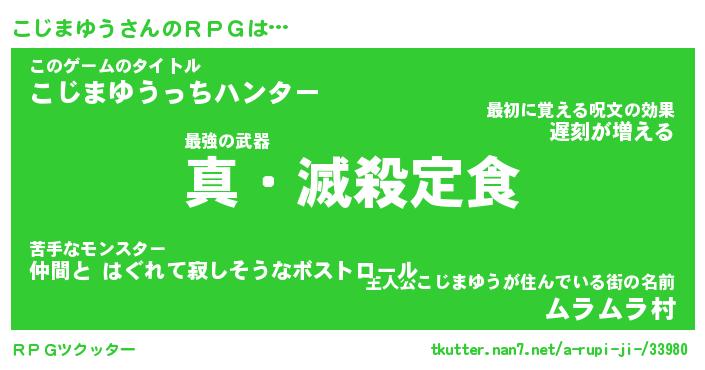 | 男性向けラノベタイトル風あだ名 | 『コジマユウアートオンライン』 |