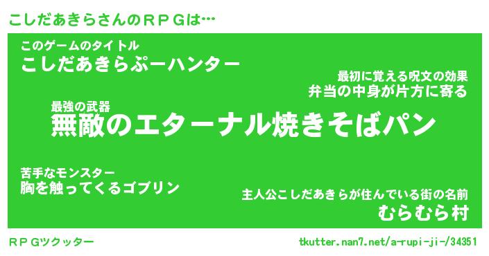 | 伝説のあだ名 | 『封印されし傭兵こしだあきら』 |