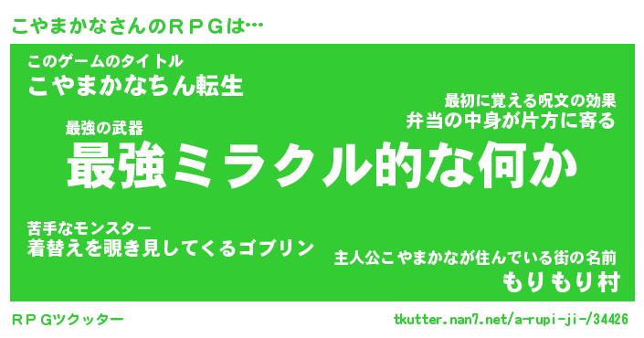 | 男性向けラノベタイトル風あだ名 | 『コヤマカナアートオンライン』 |