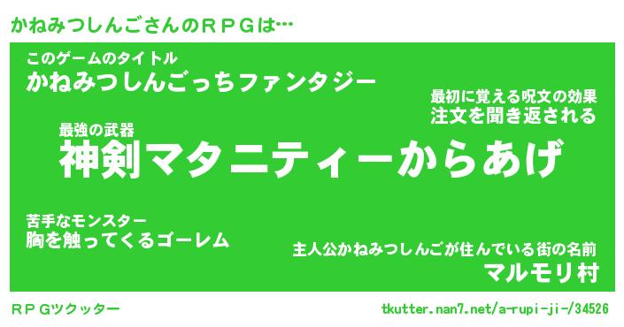 | 胡散臭い通販商品みたいなあだ名 | 『モテモテ間違いなし霊験あらたかなお札…その名も「かねみつしんご」』 |