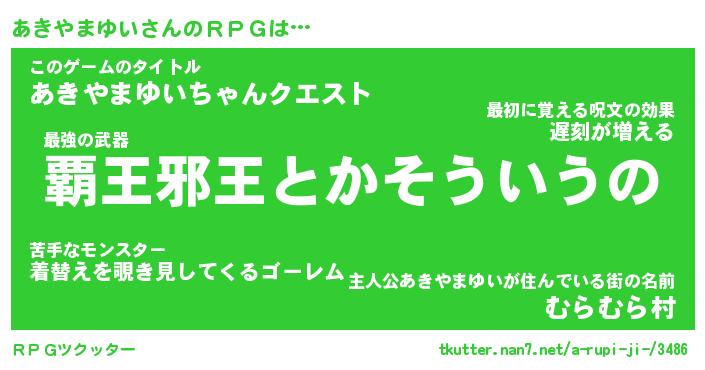| 男性向けラノベタイトル風あだ名 | 『アキヤマユイアートオンライン』 |