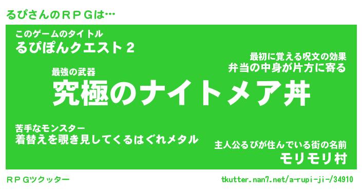 | 女子向けラノベタイトル風あだ名 | 『るぴ姫と円卓の騎士』『るぴ伯爵の花嫁』 |