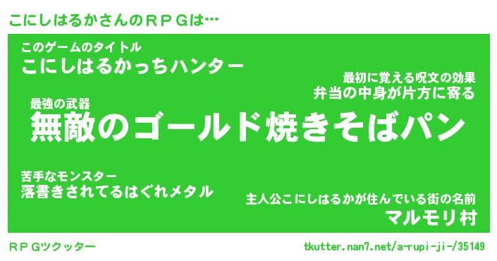 | 男性向けラノベタイトル風あだ名 | 『コニシハルカアートオンライン』 |