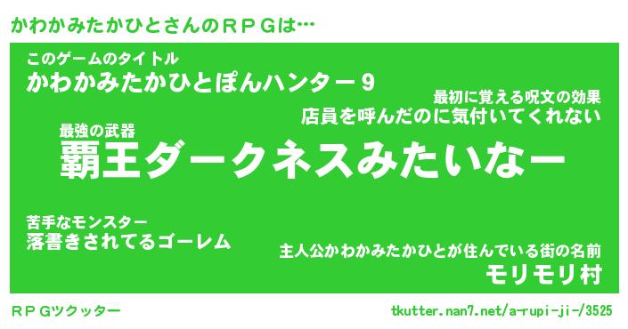 | 伝説のあだ名 | 『封印されし傭兵かわかみたかひと』 |